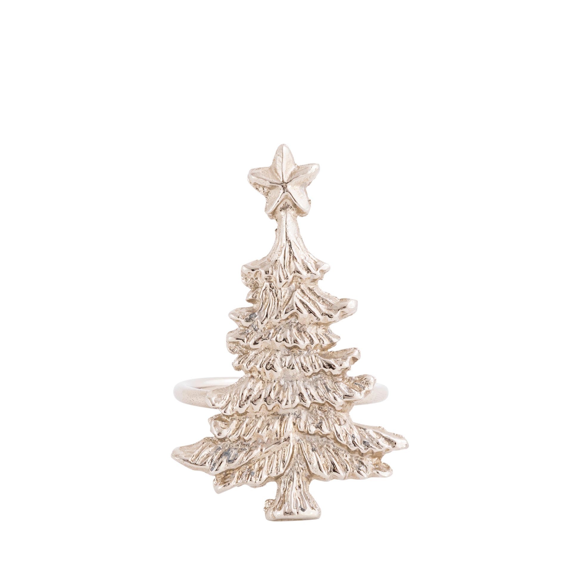 Christmas Tree Metal Napkin Ring Silver (Set of 4)